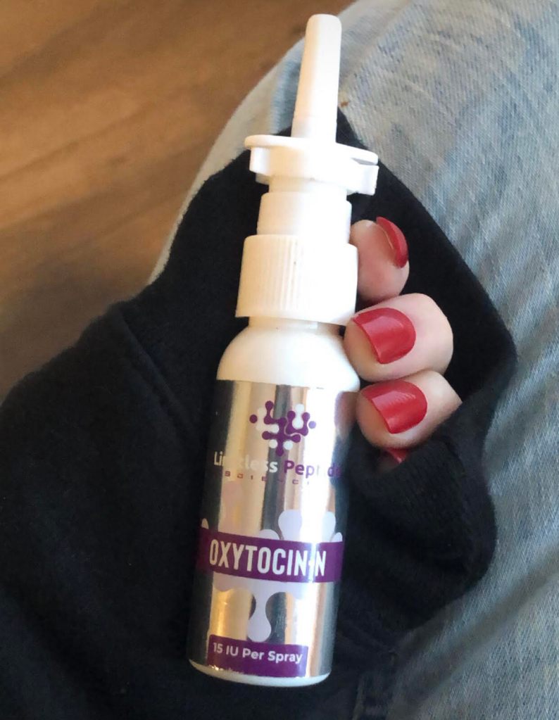 Despite my trying the nasal spray, I found that I prefer to take a supplement to boost my own body’s production of oxytocin. You can buy it here it in a capsule. It works much better for me.